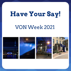 VON Week is May 23rd – 29th and we want to hear your thoughts on our 2021 theme. Every year, VON Week provides us an opportunity to raise VON’s profile in the communities we serve. Now more than ever, we will use this week to recognize the positive impact VON has in our communities.